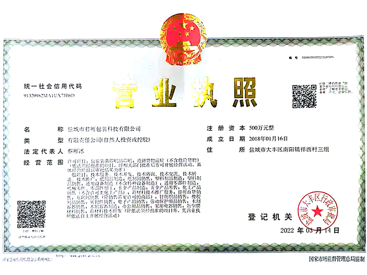 企業(yè)資質(zhì)鹽城市君雁包裝科技有限公司,始創(chuàng)于2021年,公司面積20000平方米。公司位于中國鹽城大豐區(qū)南陽鎮(zhèn)祥西村三組,是一家集研發(fā)、生產(chǎn)、銷售為一體的包裝材料企業(yè),產(chǎn)品涉及:外包裝紙箱,防水紙箱,涂蠟紙箱,浸蠟紙箱,冷柜紙箱,木包裝箱,免熏蒸木包裝箱,木托盤,EPE珍珠棉,珍珠棉袋,EVA板材,EVA大板,包裝海綿等包裝材料。包裝設(shè)計制造符合API、ANSI、ASTM、NACE、ISO、EN、BS、DIN、MSS SP等國際標(biāo)準(zhǔn)的要求,在鹽城以及周邊城市的市場上有良好的評價。公司擁有先進的生產(chǎn)設(shè)備,嚴(yán)格的管理制度和高素質(zhì)的人才團隊,保證了高質(zhì)量的產(chǎn)品和良好的服務(wù),同時我司還可以根據(jù)客戶特殊工況需求,提供全套包裝技術(shù)解決方案。